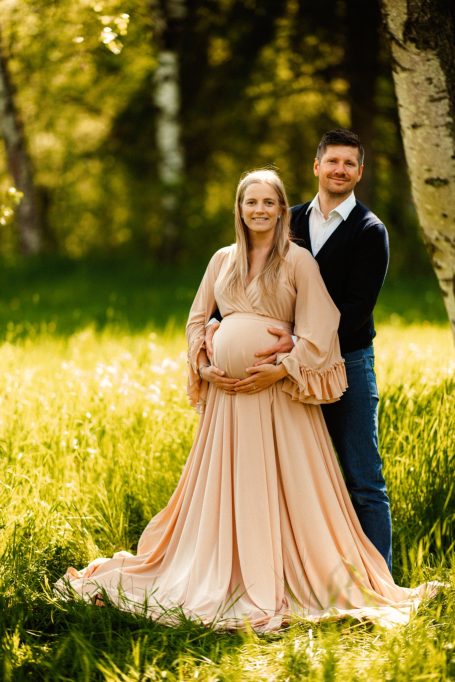 In meinen Designer-Kleidern entstehen stilvolle, elegante und warme Bilder, die deine Schwangerschaft auf einzigartige Weise festhalten.